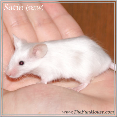SatinThe second most common kind of coat among pet shop mice, satin coats are short-haired and shiny with a silky texture. It can be harder to see on dark-colored mice.