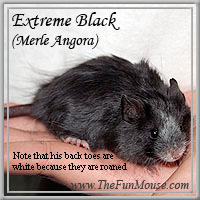 Extreme BlackExtreme black mice are extremely darkly-colored mice, even their skin is dark. They don't have the same brown/red in their coat that black mice do, and they lack the yellow hairs that black mice do.