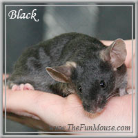 BlackBlack mice are very dark mice that aren't blatantly brown at first glance. They may have patches of dark skin and a dark gradient in the ears, but they are light-skinned otherwise. When they're babies, they'll have yellow hairs around their ears, genitals, and base of the tail, and they lose these when their adult coat comes in.
