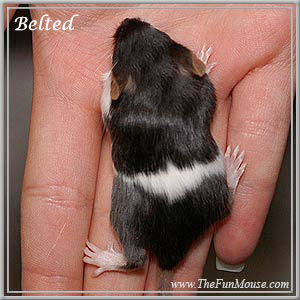 BeltedBelted mice have a "belt" of white going around their mid-section.