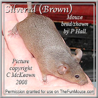SilveredSilvered mice have a mix of colorless and full color hairs, as well as silver-tipped hairs and striped hairs throughout the coat.