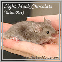 Light Mock ChocolateLight mock chocolate mice are pale brown mice, but distingushed from coffee and champange by generally being darker and being caused by a different genotype.