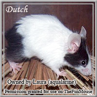 DutchDutch mice have a full-body white mark that makes them have colored oval-shaped spots around their eyes and a colored rump.