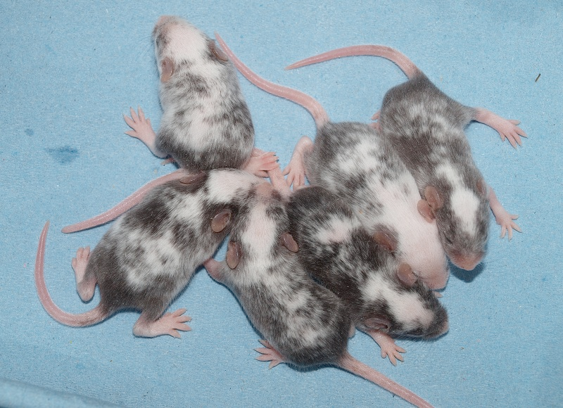 Variegated / Dominant SpottingVariegated mice may be mostly white with spots of color that normally aren't even. This gene is very easy to mix up with piebald.