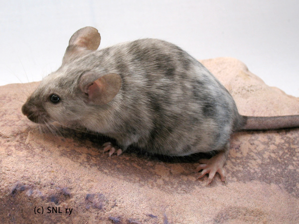 Silvered is recessive and occurs in genotype si/si on chromosome 10. It first originated as a result of random mutation in commercial breeding. Silvered can only occur in non-agouti (a/a) mice.